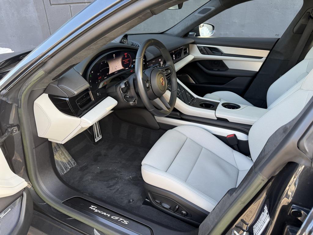 Tech Package! Premium Package! Rear Axle Steering! You are looking at a one owner 2023 Porsche Taycan GTS with 8,063 miles. The options includeTech Package, Premium Package, Power Folding Exterior Mirrors, Exterior Mirrors in Exterior Color, Under Door Puddle Light Projectors, Model Designation on Rear in High Gloss Black, Porsche Dynamic Chassis Control Sport (PDCC Sport), Rear Axle Steering, Porsche Surface Coated Brakes (PSCB) with Calipers in High Gloss Black, All-Season Tires for 21'' Wheels, 21'' Mission E Design Wheels, Ionizer, Power Seats (14-way) with Comfort Memory, Rear 2+1 Seats, Heated Seats (Rear), Ventilated Seats (Front), Advanced 4-Zone Climate Control, Steering Wheel in Leather, Storage Package, Porsche Crest on Headrests (Front and Rear), Dashboard End Trims in Leather, Door Trim Package in Leather - Chalk, Center Console Trim in Leather - Chalk, B-Pillar Trims in Race-Tex, Interior Trim in Aluminum Rhombus, Pedals in Aluminum, Door-Sill Guards in Black Brushed Aluminum, Illuminated, Passenger Display, Burmester 3D High-End Surround Sound System, Power Charge Port Cover, Thermally & Noise Insulated Glass, Panoramic Roof with Variable Light Control, Head-Up Display.This vehicle is being sold with the balance of the Factory Warranty which will be good until 03/30/2027 or 50,000 miles, whichever occurs first. Additionally, this vehicle is being sold with Porsche's Certified Pre-Owned warranty which will extend your warranty an additional 2 years. Along with the 2 years of warranty, Porsche's Certification gives you the reassurance that this vehicle is as close to new as possible having gone through Porsche's rigorous 110+ point inspection and reconditioning process. Please feel free to call or email us with any of your questions regarding the vehicle, or stop in, and find out why Porsche Main Line was given the award as the top Premier dealer in the U.S. An award given to the dealer who exhibits uncompromising excellence in every phase of business. A title distinguishing us as the best of the best.