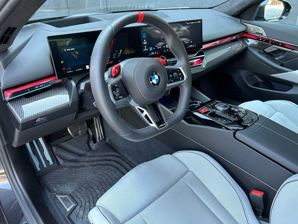 One owner! Executive Package including front ventilated seats! 20"" front and 21"" rear M dual-spoke wheels! You are looking at a 2025 BMW M5 with 1,251 miles. The options include: Dark Graphite Metallic, Driving Assistance Professional Package including Active Driving Assistant Pro, Executive Package including front ventilated seats, interior camera, front and rear heated seats, BMW Iconic Glow kidney grille, and parking assistant plus, Carbon Package including M Carbon exterior package, spoiler, mirror caps, and carbon fiber reinforced polymer roof, 4.4L TwinPower Turbo V8 engine with M Drive Professional, carbon fiber silver thread high gloss trim, Silverstone/Black interior, 8-speed sport automatic transmission, performance tires with 20"" front and 21"" rear M dual-spoke wheels, M multifunction seats with extended Merino leather upholstery, training service fee and gas guzzler tax, AM/FM audio system, power and heated front seats, SiriusXM satellite radio with 1-year subscription, BMW Assist eCall, BMW TeleServices, ConnectedDrive services with Connected Package Pro, Bowers & Wilkins surround sound system, wireless device charging, personal eSIM 5G, BMW curved display with head-up display, and Apple CarPlay and Android Auto compatibility.This vehicle is being sold with balance of factory warranty which is good until 03/22/2029 or 50,000 miles; whichever comes first. Please feel free to call or email us with any of your questions regarding the vehicle, or stop in, and find out why Porsche Main Line was awarded top Premier dealer in the U.S. An award given to the dealer who exhibits uncompromising excellence in every phase of business. A title distinguishing us as the best of the best.