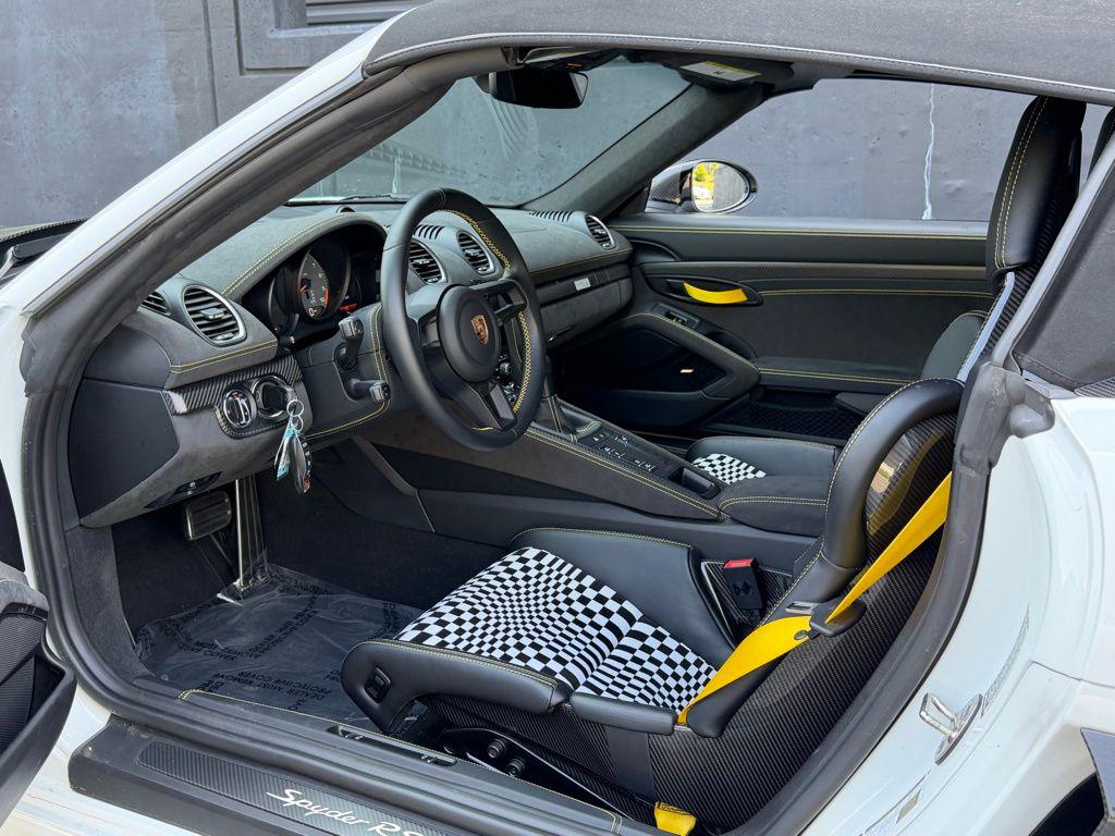Weissach Package! Porsche Ceramic Composite Brakes! BOSE Surround Sound! Weissach Package, Spyder RS Top with Accents in Deviated Color, Front Trunk Lid in Exposed Carbon Fiber/Partially Painted i.c.w. Weissach Package, Deletion of ''Spyder RS'' Logo on Doors, ''PORSCHE'' Logo on Rear in High Gloss Silver, Chrono Package, Porsche Ceramic Composite Brakes (PCCB), Wheels Painted in Silver, 20'' 718 Cayman GT4 RS Forged Magnesium Wheels, Extended Deviated Stitching Interior Package, Steering Wheel and Gear Lever/Selector in Black Leather, Seat Belts in Racing Yellow, Steering Column Casing in Leather with Deviated Stitching, Door Pull Loops in Racing Yellow, Door-Sill Guards in Carbon Fiber, Illuminated, Sun Visors in Race-Tex, Inner Door-Sill Guards in Leather with Deviated Stitching, Smartphone Compartment, BOSE Surround Sound System, Deletion of SiriusXM Antenna, Color Selection for Stitching in Deviated Color - Racing Yellow, LED Headlights incl. Porsche Dynamic Light System (PDLS), Auto-Dimming Mirrors with Integrated Rain Sensor, Light Design Package, Luggage Net in Passenger Footwell.This vehicle is being sold with the balance of the Factory Warranty which will be good until 12/14/2028 or 50,000 miles, whichever occurs first. Additionally, this vehicle is being sold with Porsche's Certified Pre-Owned warranty which will extend your warranty an additional 2 years. Along with the 2 years of warranty, Porsche's Certification gives you the reassurance that this vehicle is as close to new as possible having gone through Porsche's rigorous 110+ point inspection and reconditioning process. Please feel free to call or email us with any of your questions regarding the vehicle, or stop in, and find out why Porsche Main Line was given the award as the top Premier dealer in the U.S. An award given to the dealer who exhibits uncompromising excellence in every phase of business. A title distinguishing us as the best of the best.